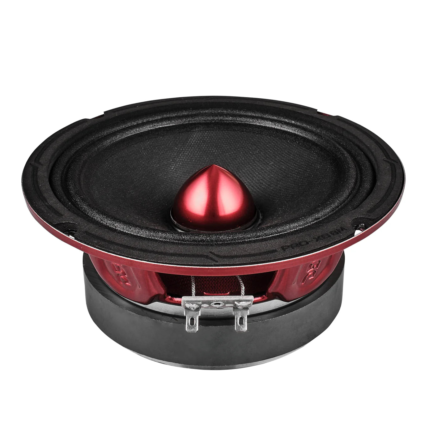 • Altavoz de rango medio de 6,5" con bala de aluminio roja, cesta de acero de color rojo, imán de ferrita de alta resistencia de 30 onzas